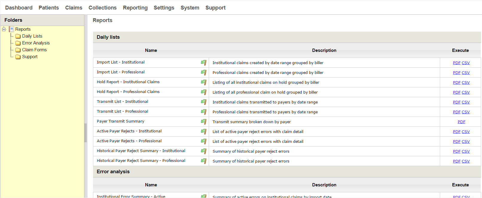 Most reports are available for either Institutional or Professional claims, but some reports are specific to a type of claim.