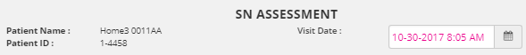 A header displays at the top of each enhanced document containing several identifying pieces of information that is associated with the document. This header includes the specific type of document that is currently open (e.g. SN Assessment, HIS - Admission, MSW Visit Note) as well as the Patient Name, Patient ID, and associated Visit Date.