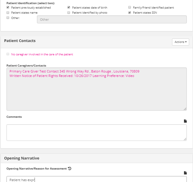 Regardless of which enhanced document is being completed, users always have the option to collapse any section of data in the document by clicking directly on the section header text (e.g. “Patient Contacts”). Additionally, users can click either