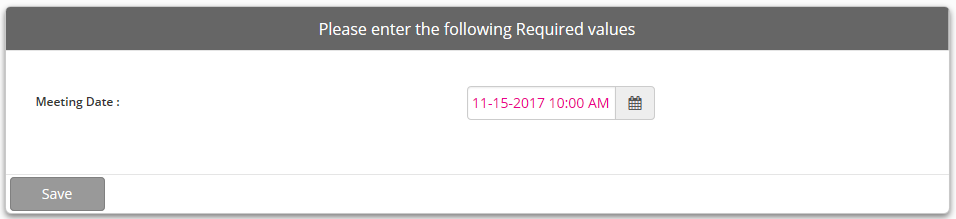 3. The Meeting Date window will display. Select the date and time of the IDT meeting. This date may be in the future if the IDT Meeting document is created ahead of the meeting.